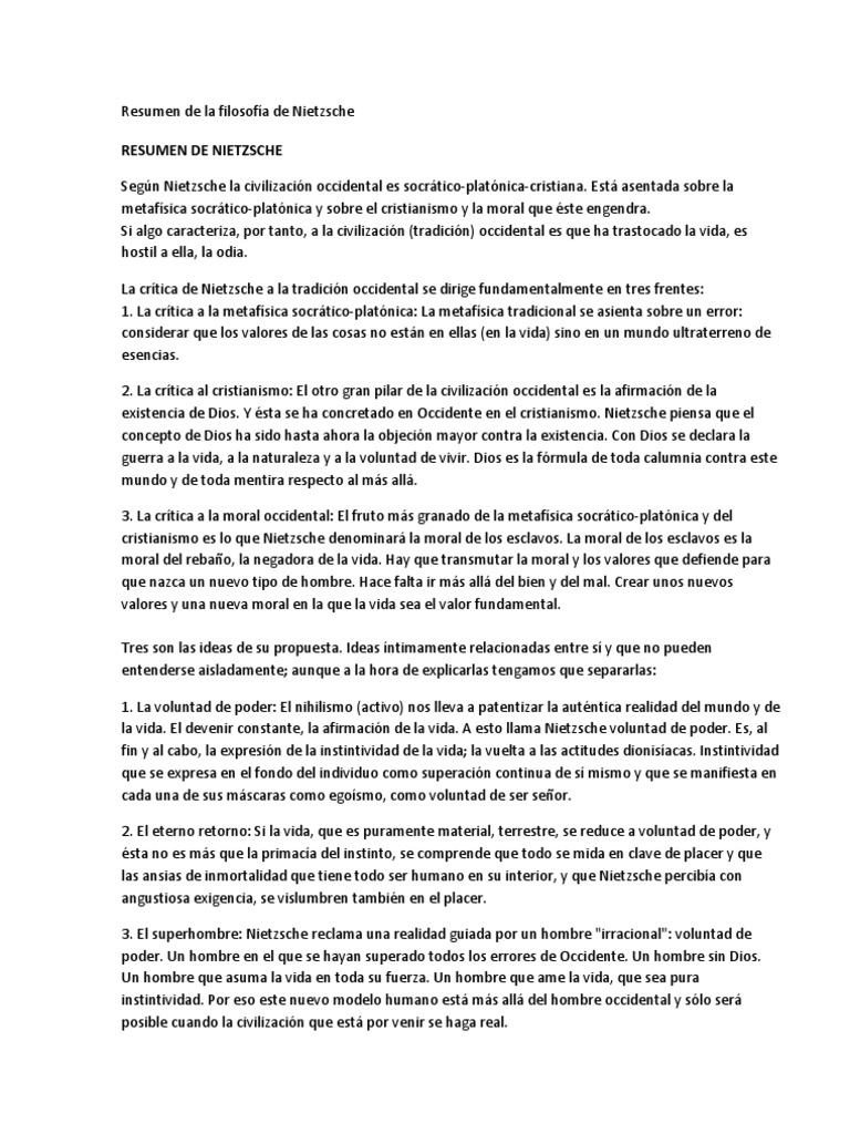Nietzsche Resumen de su pensamiento HISTORIA DE LA FILOSOFIA 😈