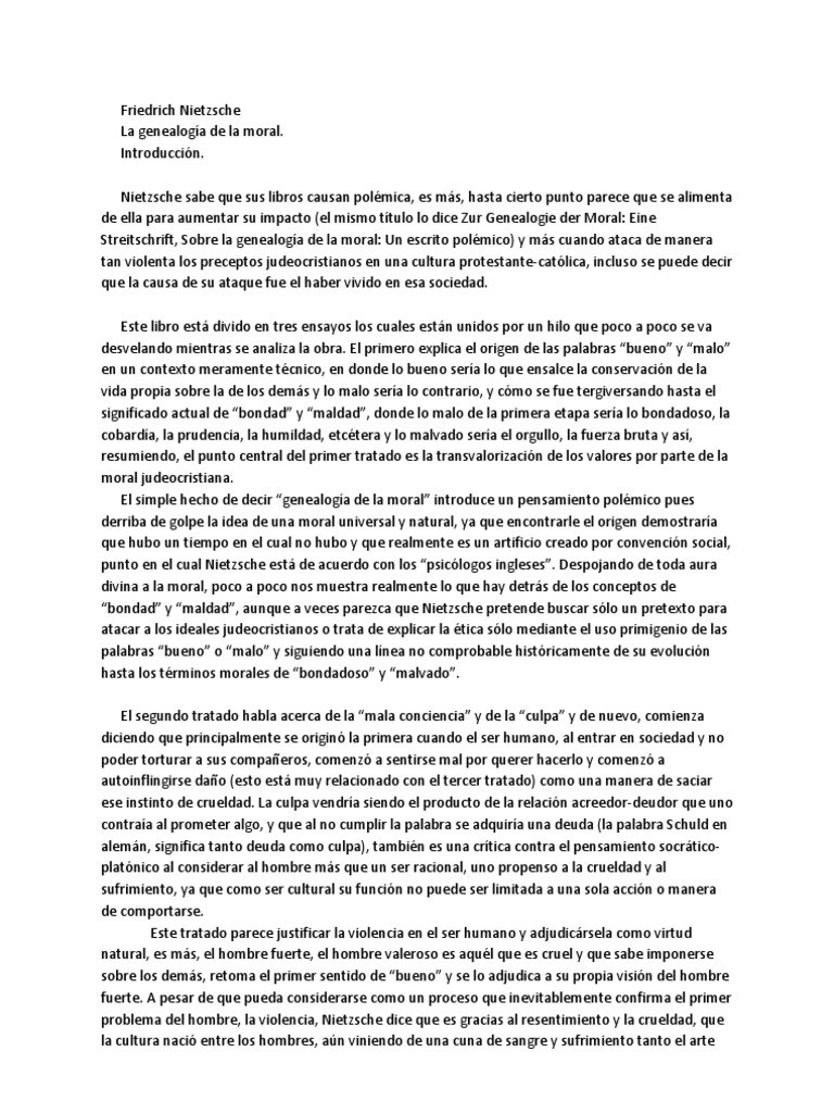 Resumen Genealogía de La Moral Friedrich Nietzsche | Friedrich ... 😈