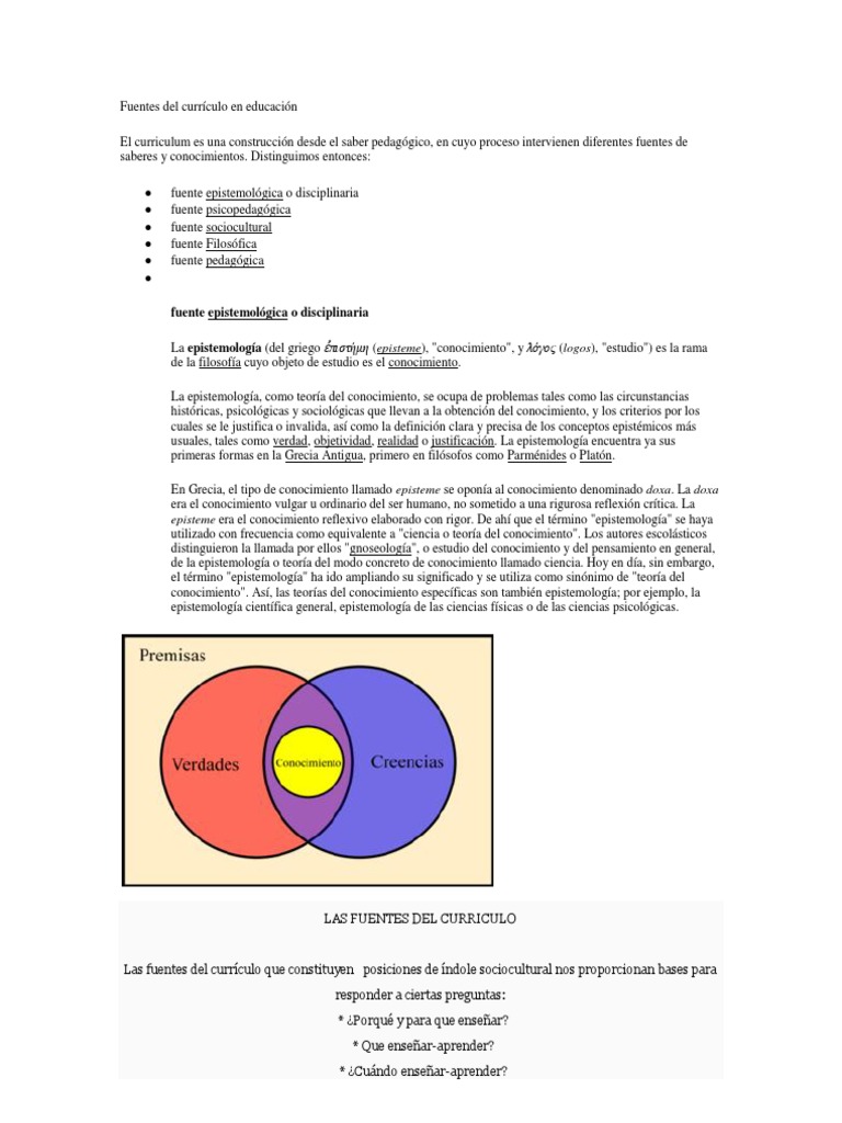 Fuentes Del Currículo en Educación | Plan de estudios | Epistemología 😈
