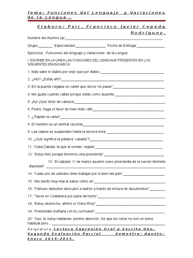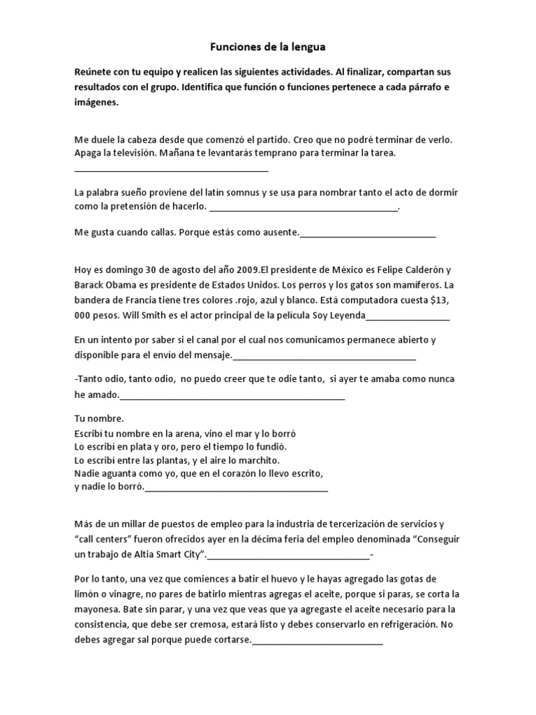 Funciones Del Lenguaje: Reconocer y aplicar las funciones ... 😈