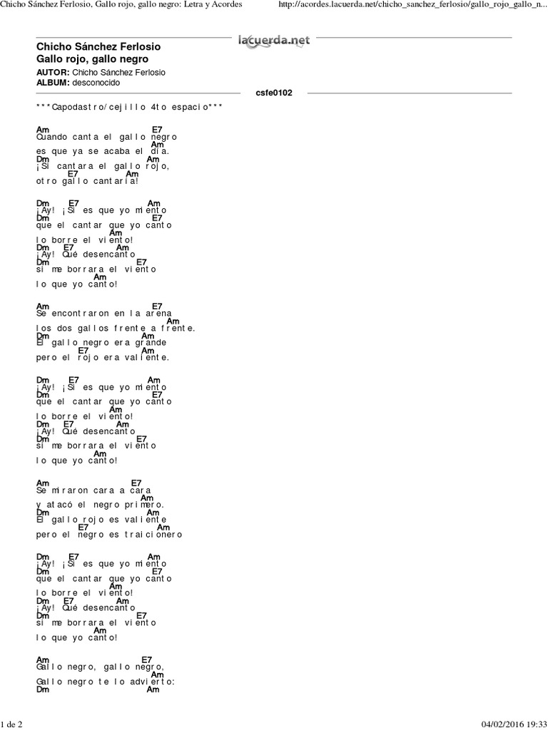 Chicho Sánchez Ferlosio, Gallo Rojo, Gallo Negro Letra y Acordes ... 😈