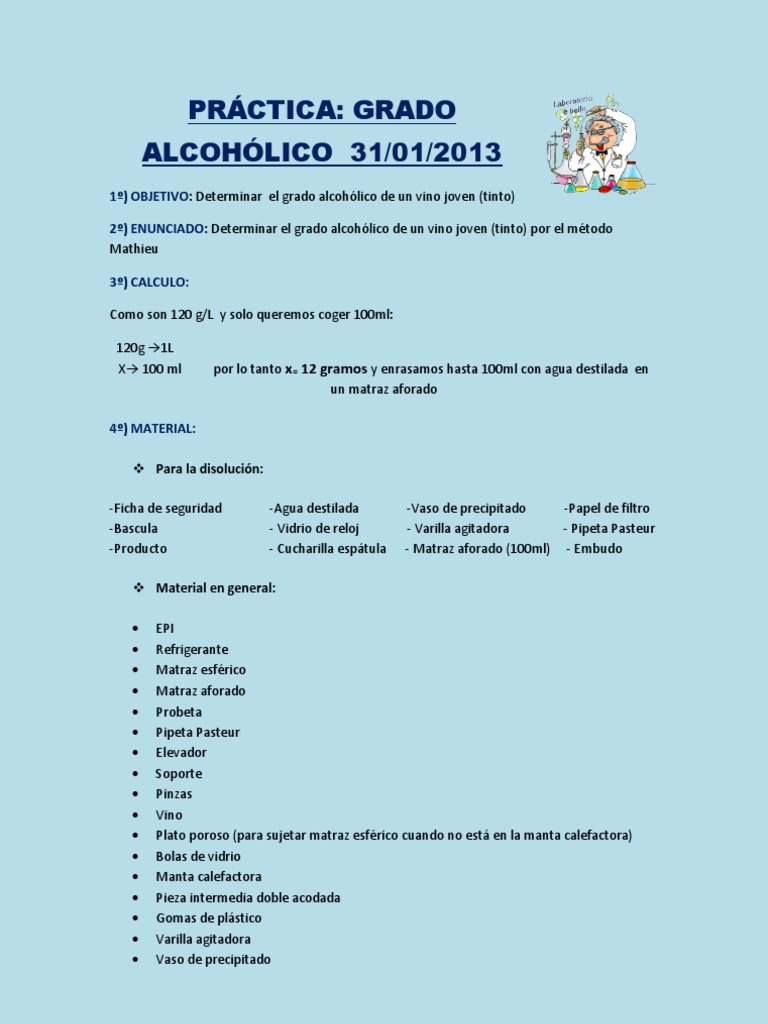 Determinación del grado alcohólico en bebidas alcohólicas PRÁCTICA ... 😈