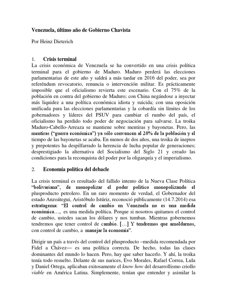 Heinz Dieterich: Este es el final del gobierno de Maduro LaPatilla.com 😈
