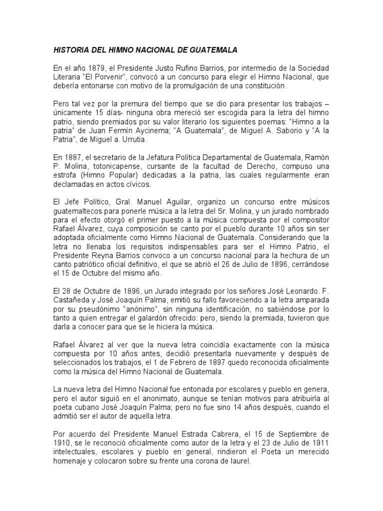 Historia del Himno Nacional de Guatemala timeline ... 😈