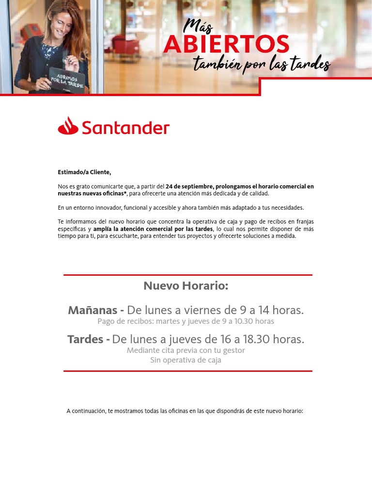 Horario Oficina Cuenta Bancaria Santander | Cuenta Bancaria 😈