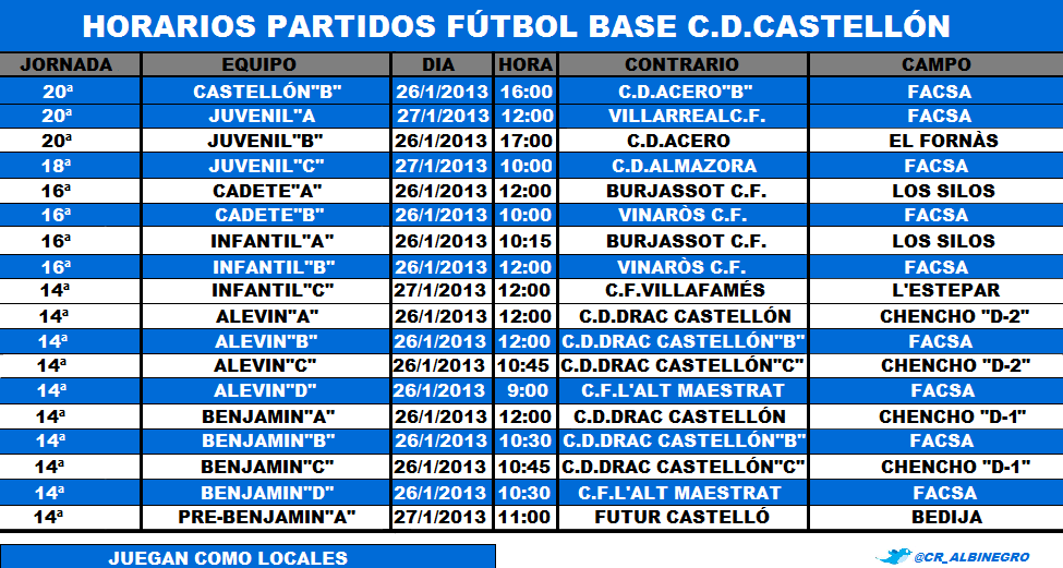 Actualidad C.D.Castellón: HORARIOS FÚTBOL BASE C.D.CASTELLÓN 😈