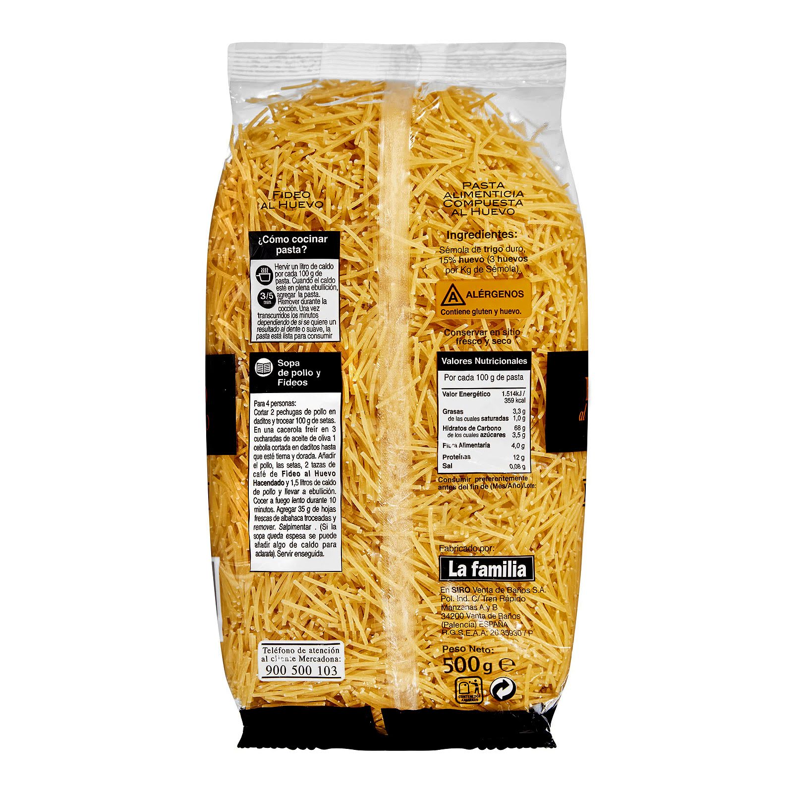 Hacendado Fideo al huevo pasta Paquete 500 g 😈