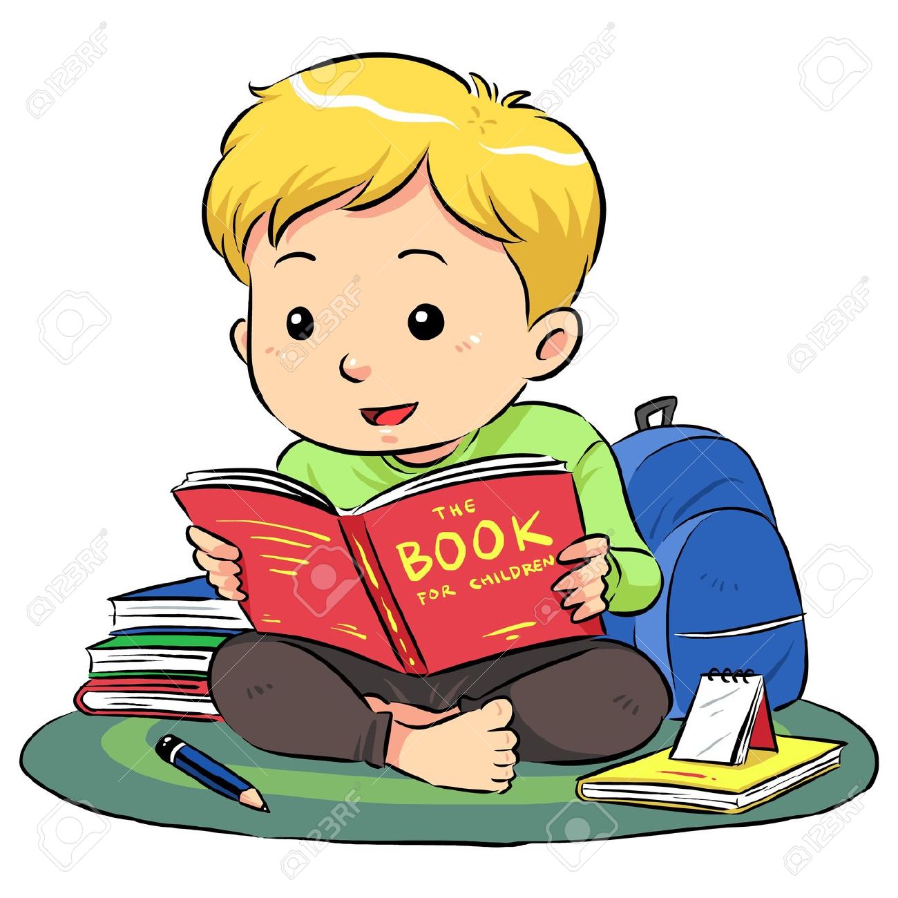 Cartoon Little Boy Reading A Book Stock Vector ... 😈