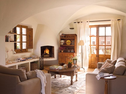 Salón con chimenea en tonos beige. | Decoracion de ... 😈