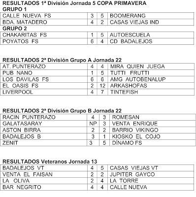 CAMPEONATO LOCAL DE FÚTBOL SALA. Resultados y Clasificaciones tras la ... 😈