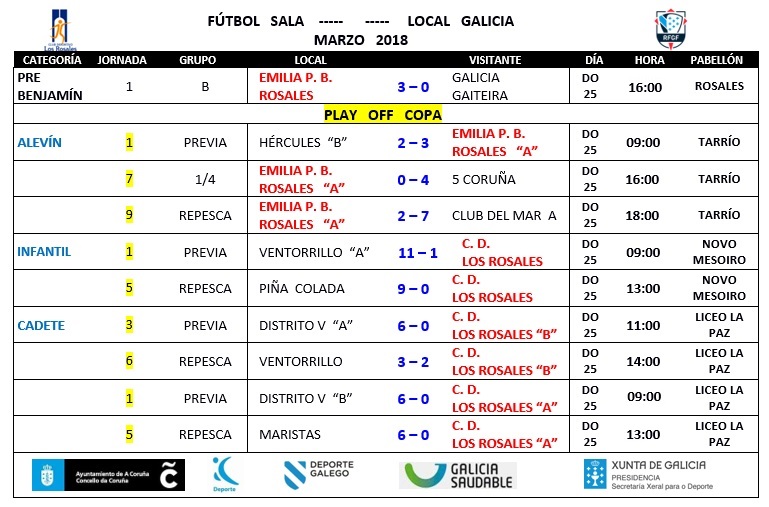 Club Deportivo Los Rosales A Coruña : Resultados Xornada Fútbol Sala 😈