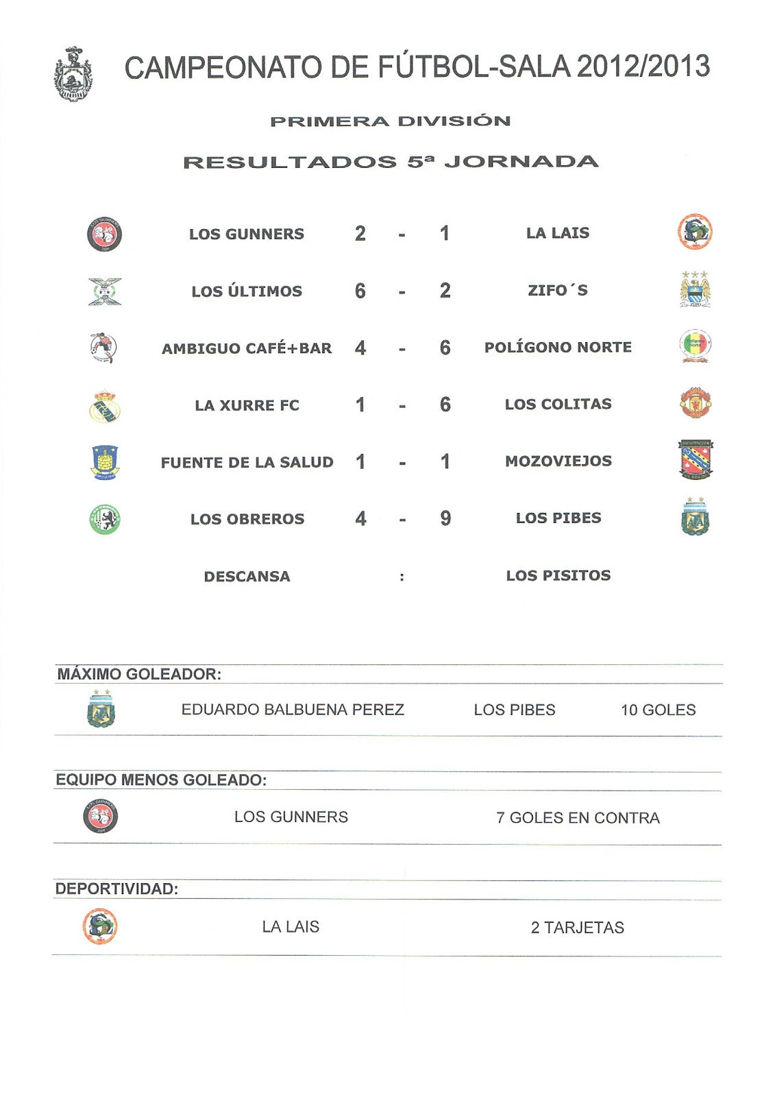 CAMPEONATO LOCAL DE FÚTBOL SALA RESULTADOS DE LA JORNADA 5ª ... 😈