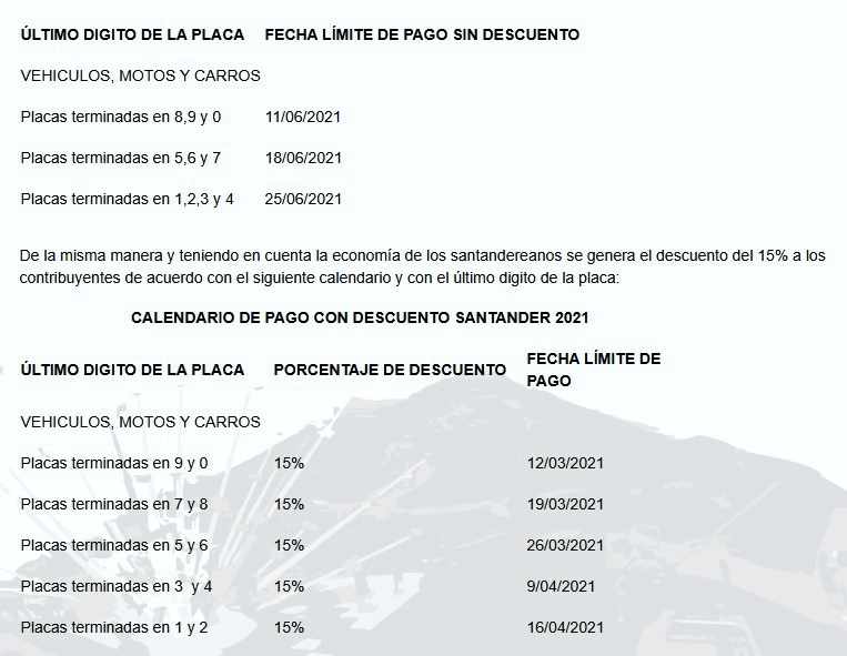 Pago del impuesto vehicular en santander año 2021: Fechas y descuentos ... 😈