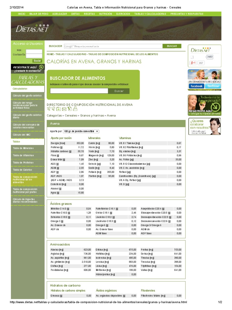 Vademecum Nutrinfo Información Nutricional de Avena ... 😈