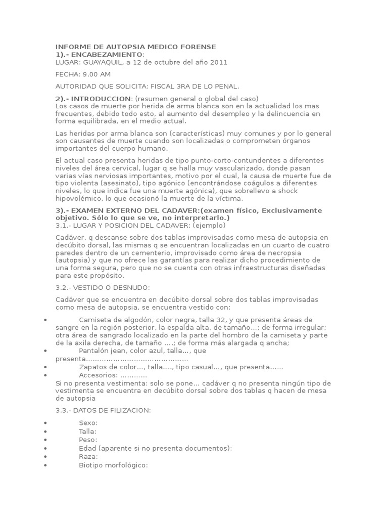 Informe Medico Forense En Materia De Lesiones Acerca de ... 😈