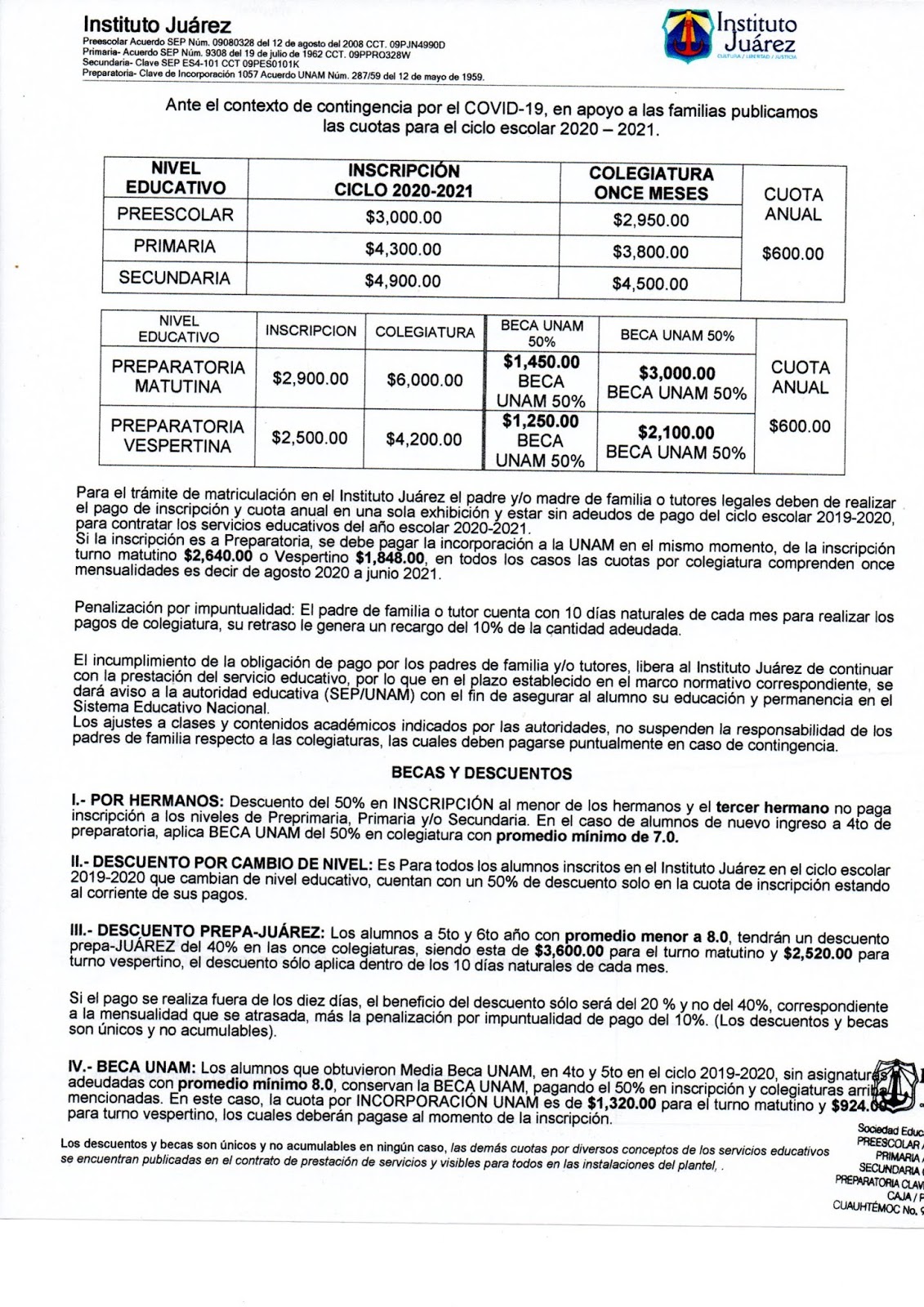 Instituto Juárez 1° Primaria: CUOTAS DE INSCRIPCIÓN CICLO ESCOLAR 2020 2021 😈