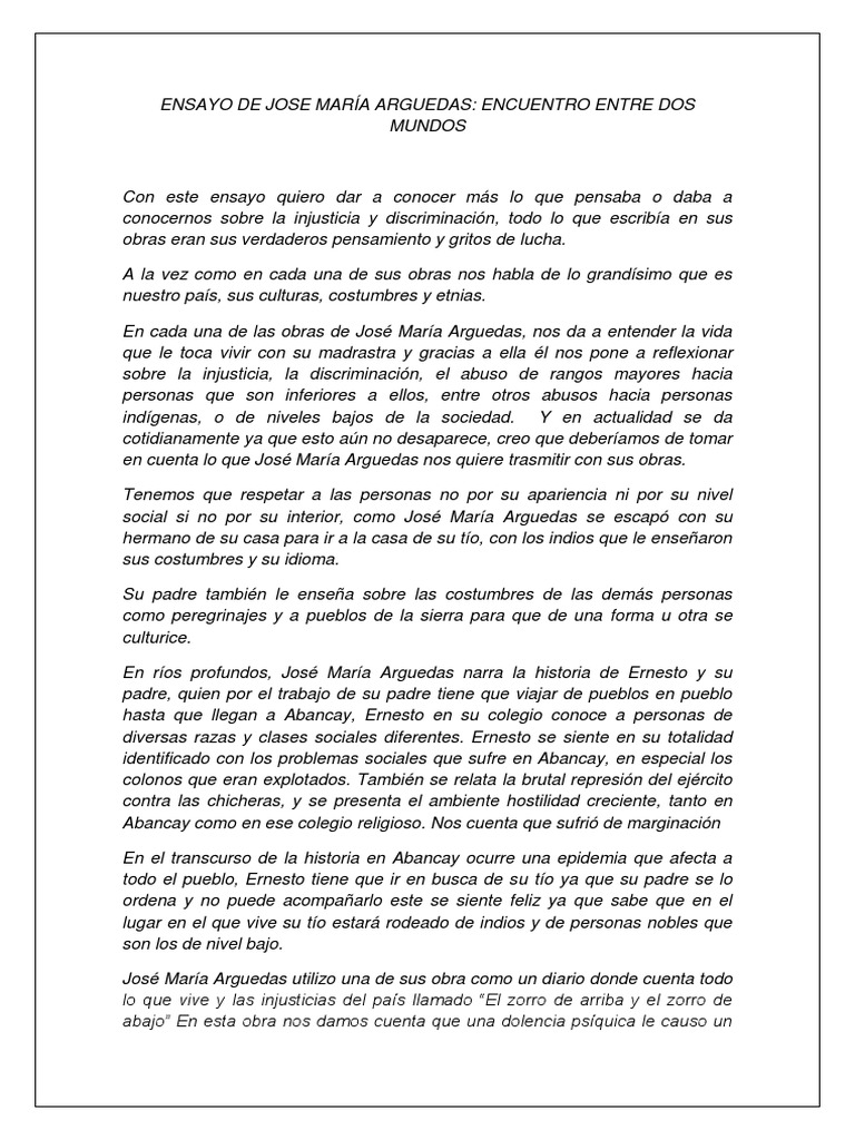 Ensayo de jose maria arguedas altamirano en base a su obra los rios p… 😈