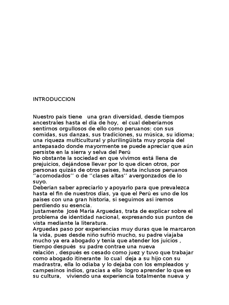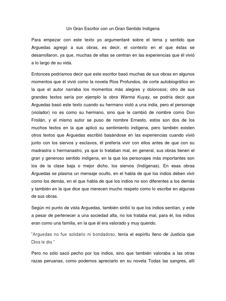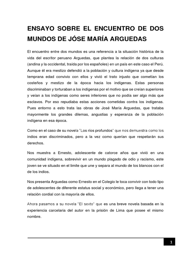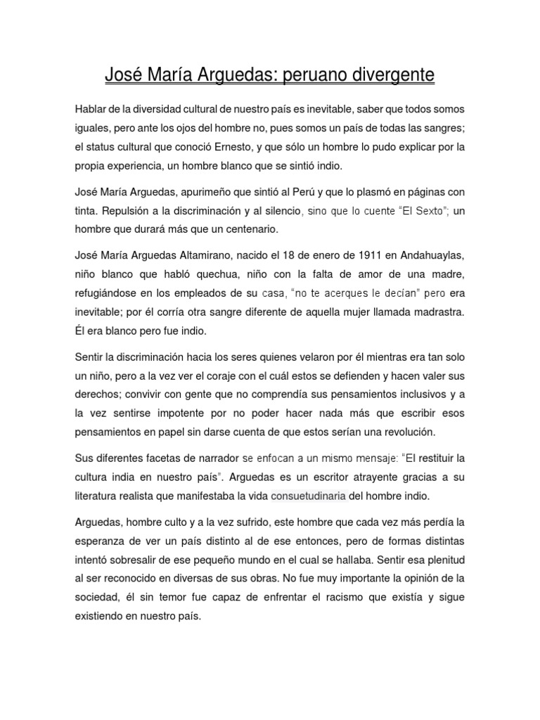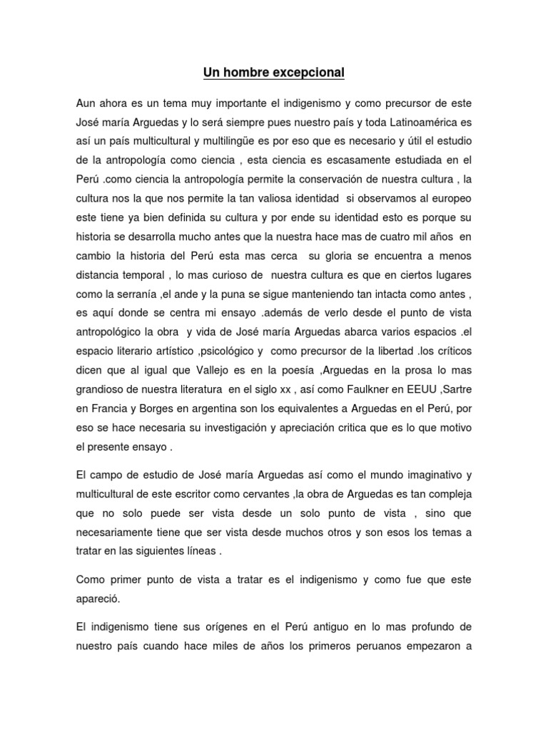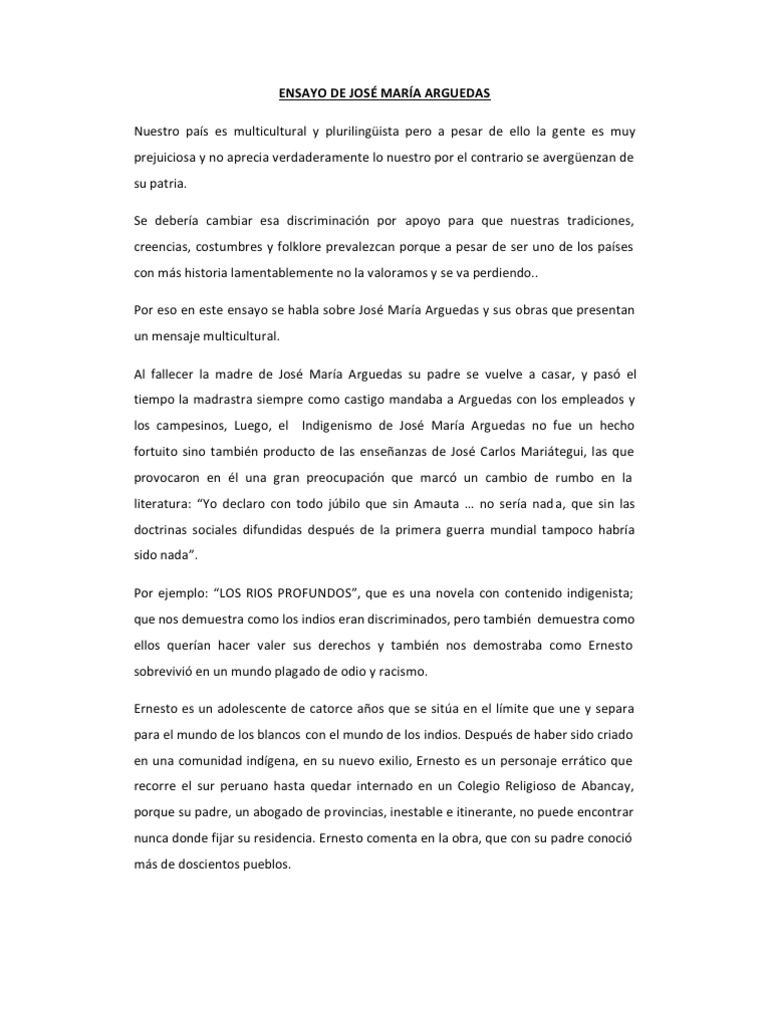 Ensayo de José María Arguedas.docx | Peru | Novels 😈