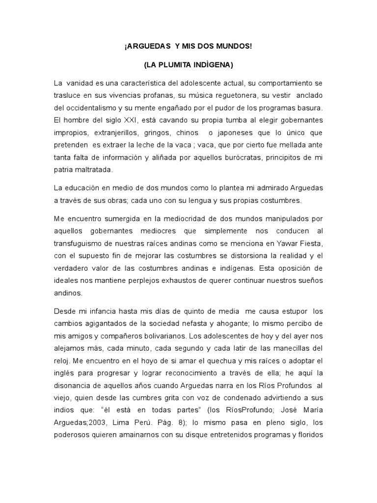 Ensayo Sobre José María Arguedas | Philosophical Science | Science 😈
