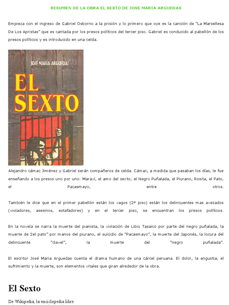 Resumen de La Obra El Sexto de Jose Maria Arguedas | Política | Elecciones 😈