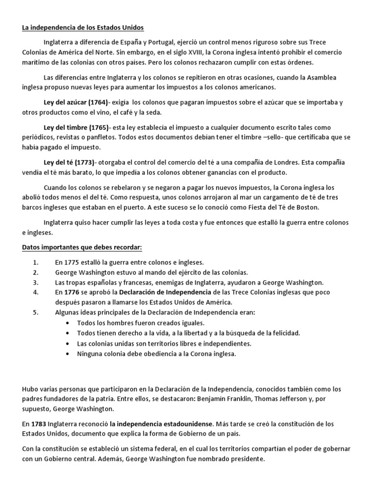 Resumen La Independencia de Los Estados Unidos ... 😈
