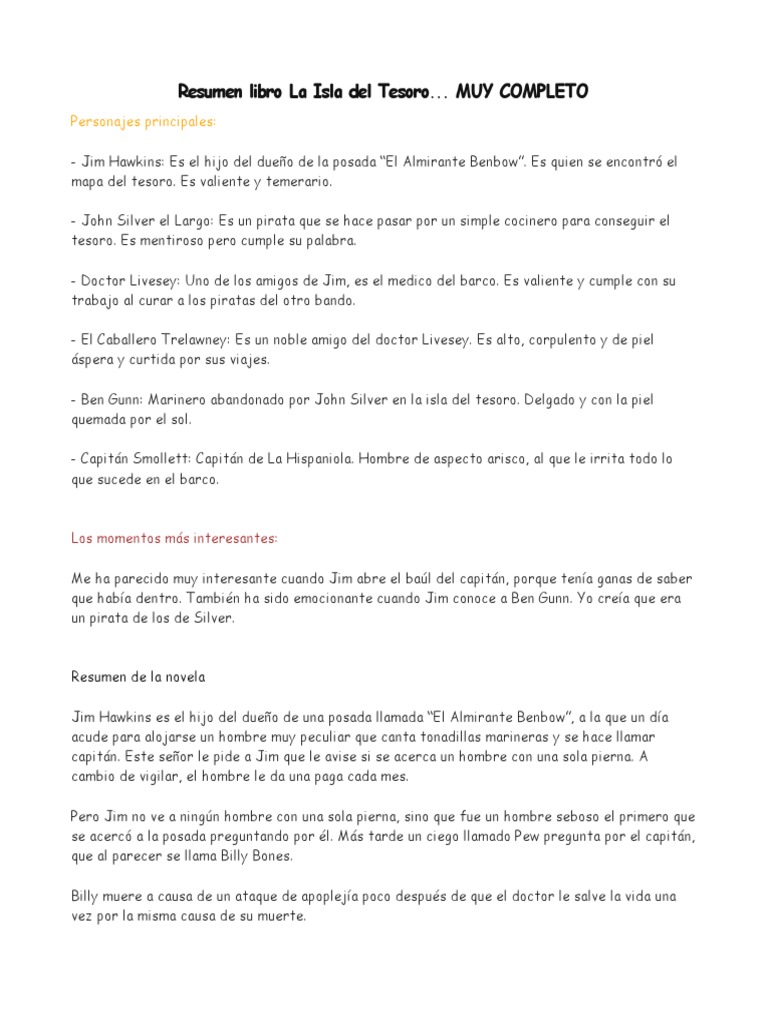 Resumen Libro La Isla Del Tesoro De Robert Louis Stevenson ... 😈