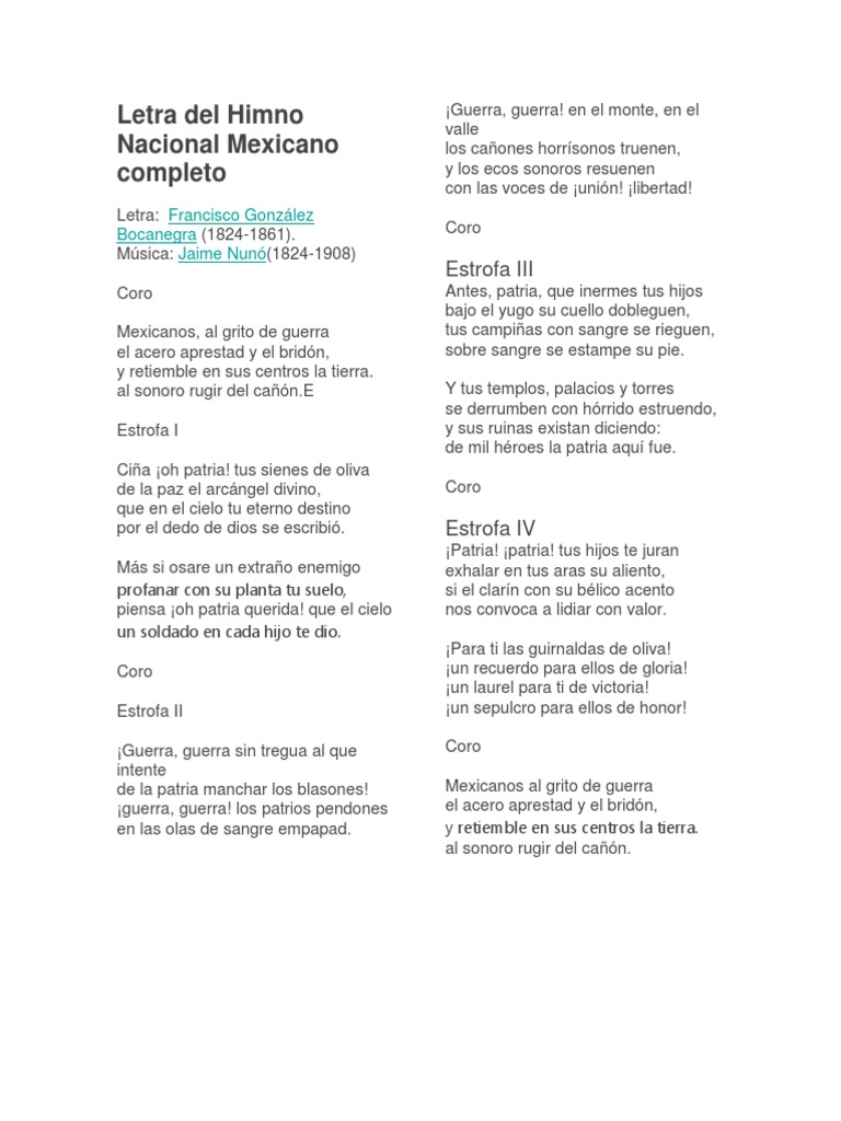 Himno Nacional Mexicano Versión escolar Oficial Letra ... 😈