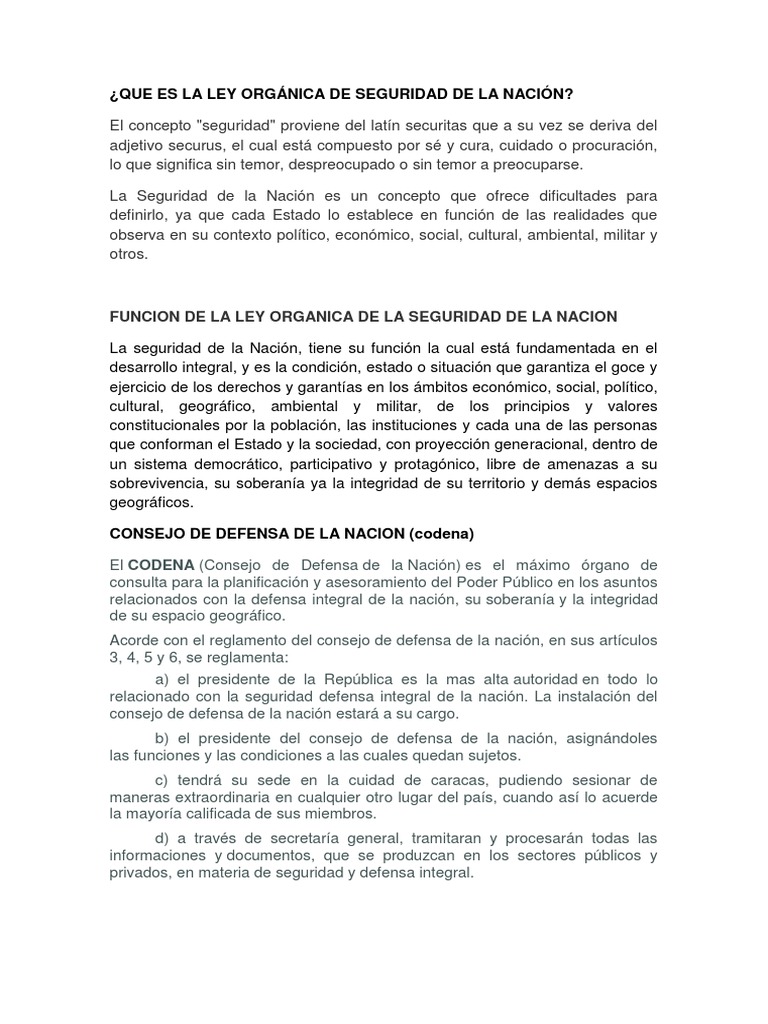 LEY ORGANICA DE LA SEGURIDAD NACIONAL.docx | Nación ... 😈