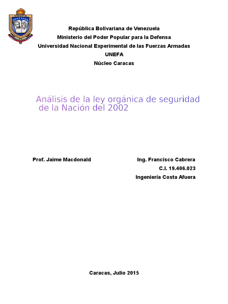 Análisis de La Ley Orgánica de Seguridad de La Nación 2002 😈