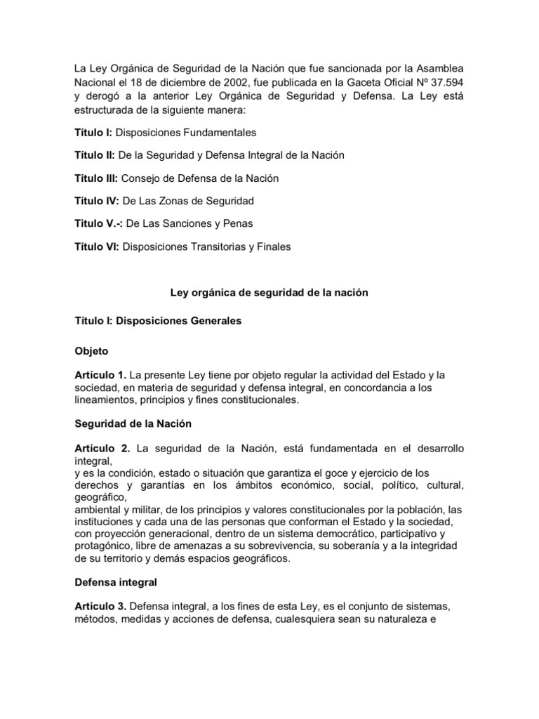 Ley Organica de Seguridad y Defensa | Consejo de seguridad ... 😈