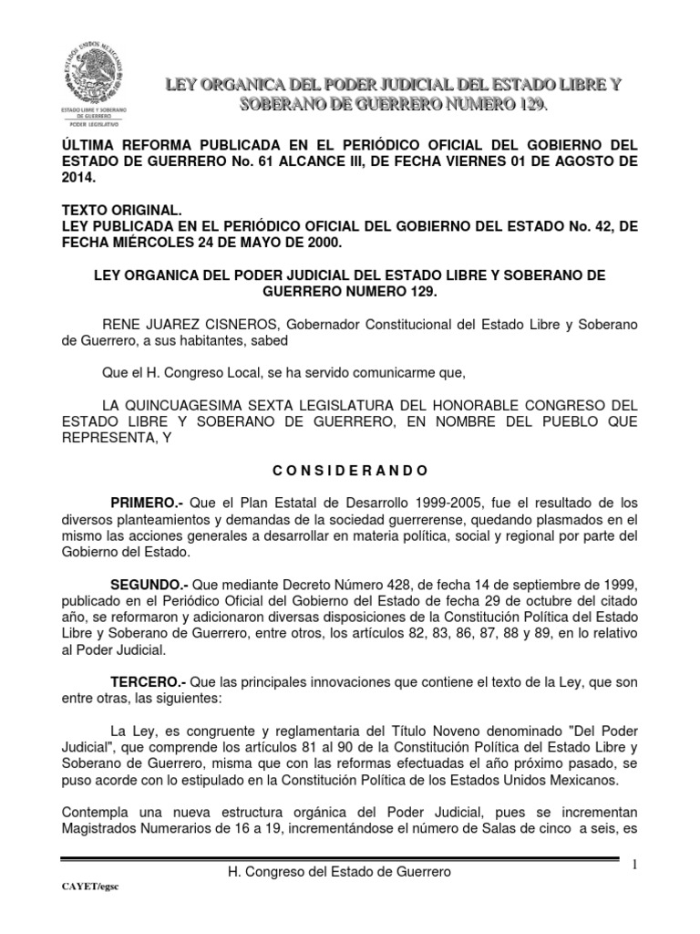 LEY ORGANICA DEL PODER JUDICIAL DEL ESTADO DE GUERRERO ... 😈