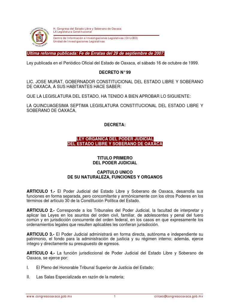Ley Orgánica Poder Judicial de Oaxaca | Juez | Jurisdicción 😈