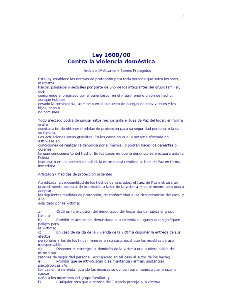 Ley 1600 Del 00 Contra La Violencia Domestica | Adopción ... 😈