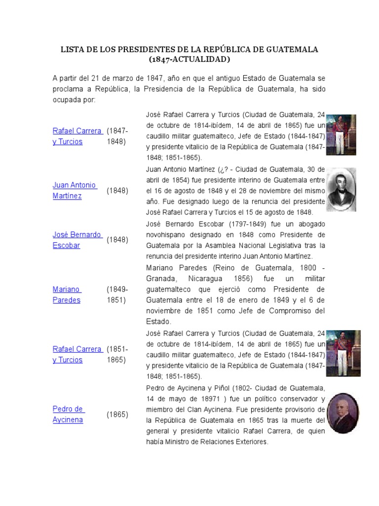 Listado de Presidentes de Guatemala | Guatemala ... 😈
