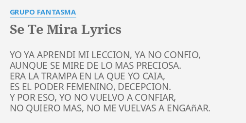 SE TE MIRA LYRICS by GRUPO FANTASMA: YO YA APRENDI MI... 😈