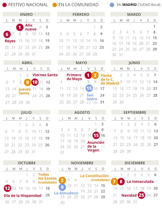 Madrid estrena calendario laboral: 12 festivos y otros dos de carácter ... 😈