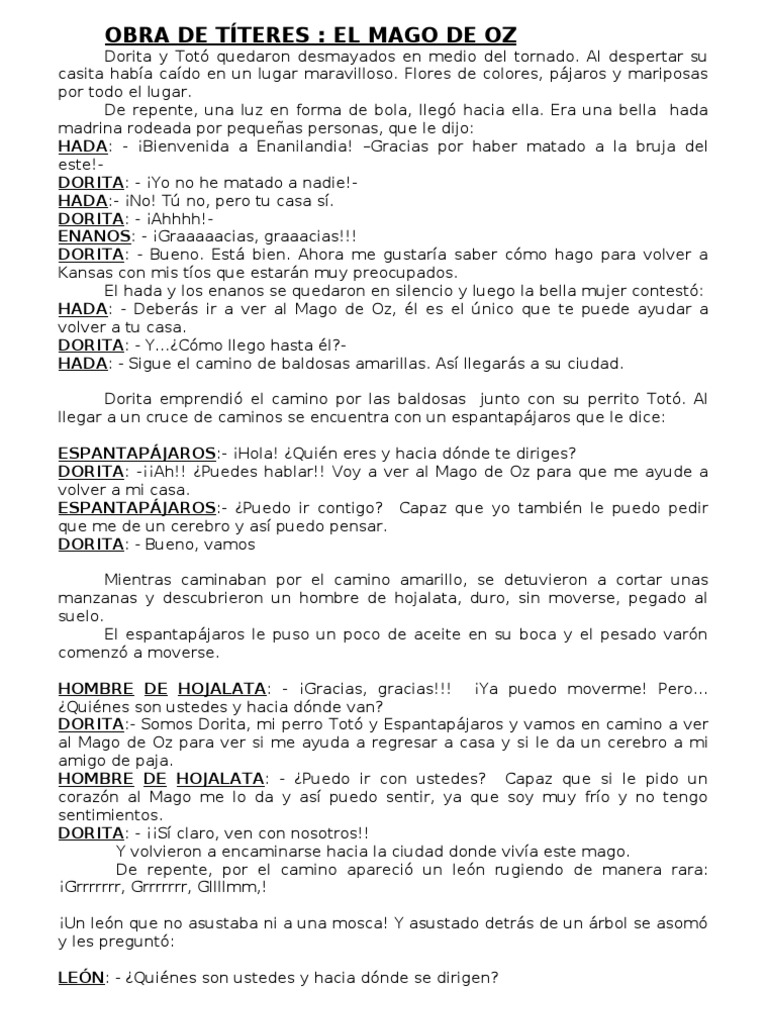 El Mago de Oz guion teatro infantil | Mago de Oz ... 😈