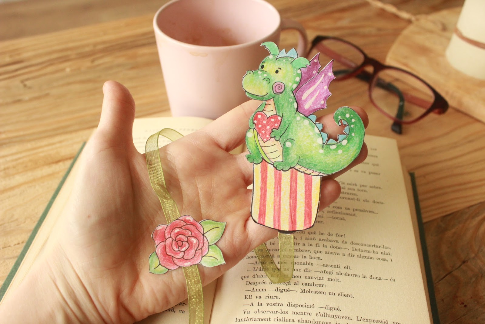 Punto de libro rosa y dragón St Jordi | Manualidades sant jordi, Rosa ... 😈