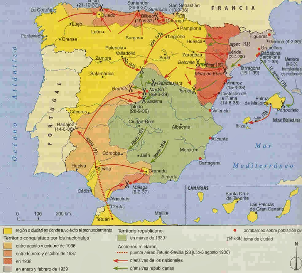 Mapa Guerra civil española | Guerra Civil Española ... 😈