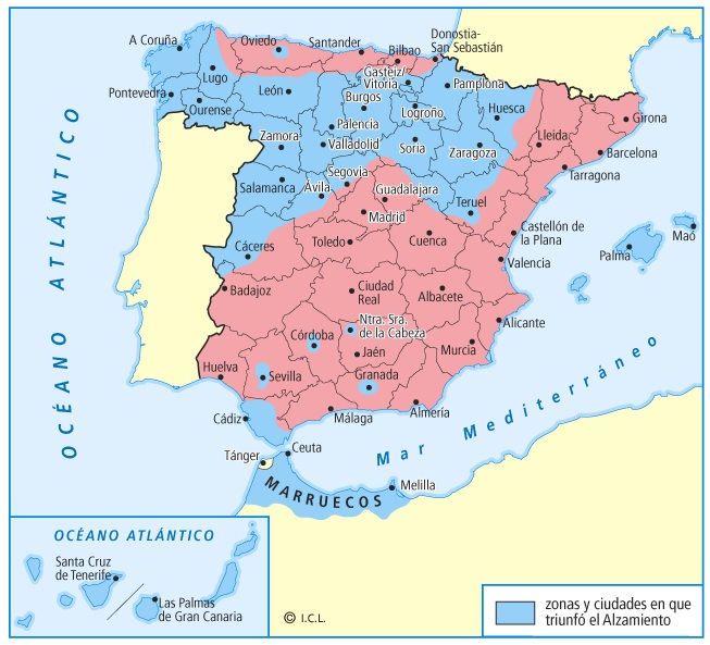 Mapa de España en julio de 1936 que muestra las zonas ... 😈