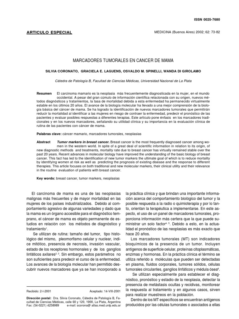 PDF Marcadores tumorales en cáncer de mama: CA 15 3 y ... 😈