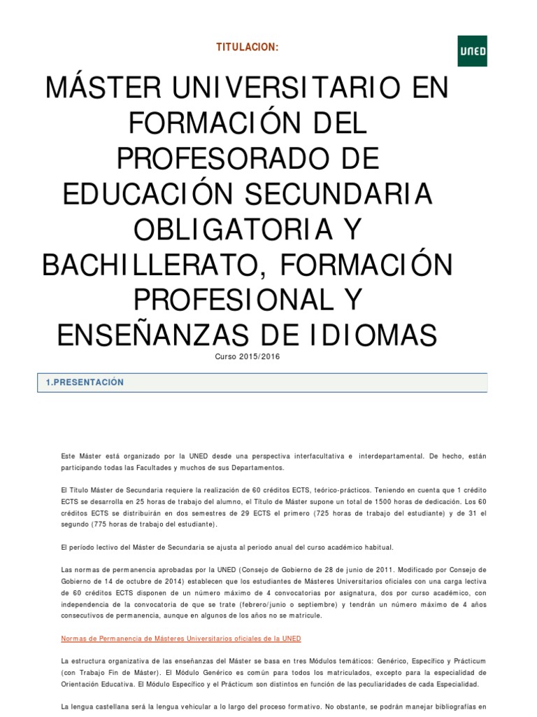 ASIGNATURAS DEL MÁSTER DE FORMACIÓN DEL PROFESORADO DE SECUNDARIA EN LA ... 😈