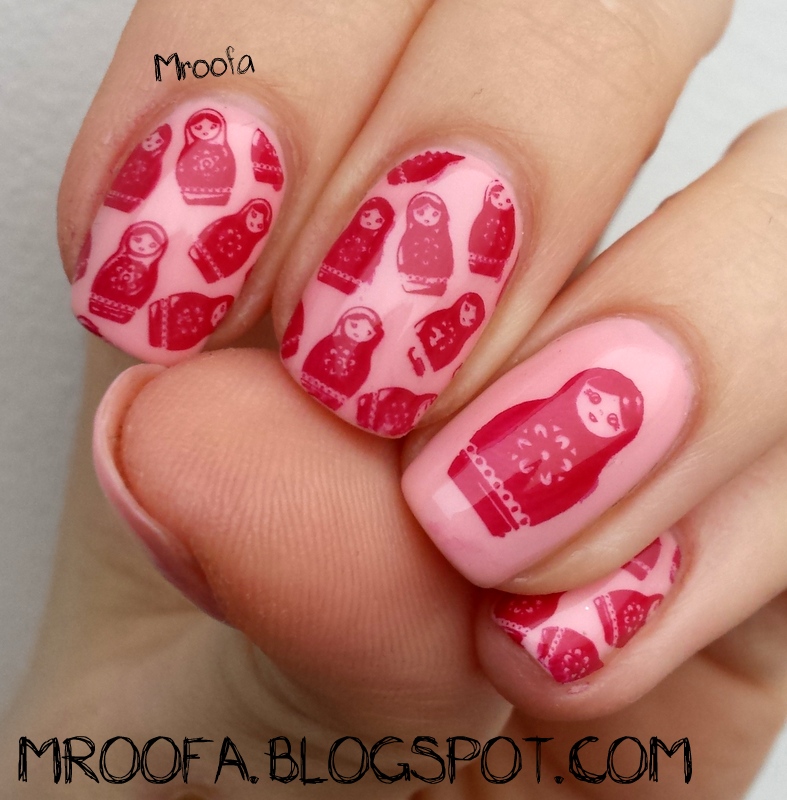 Matryoshka Dolls Nails Stemplowanie na hybrydzie Semilac 047 Pink ... 😈