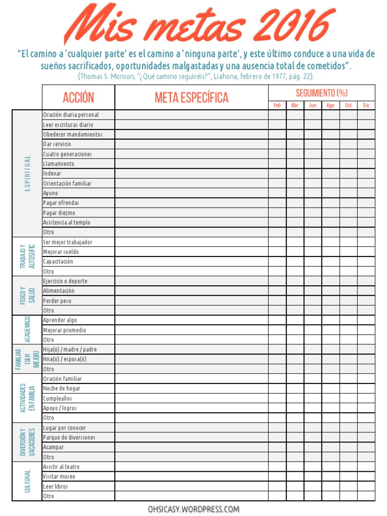 PROYECTODEVIDA: Cuadro de Metas 😈