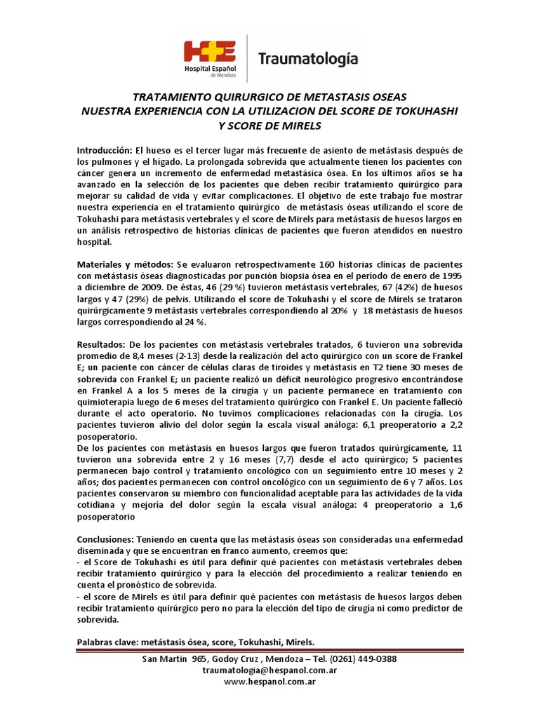 Metástasis: enfoque y cirugía ortopédica Medwave 😈