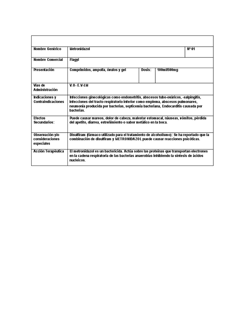 Ficha Farmacologica de Metronidazol | Drogas ... 😈