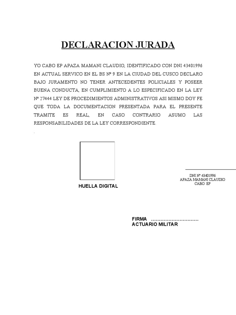 Ejemplo De Una Declaracion Jurada | redacci 243 n oficial ... 😈