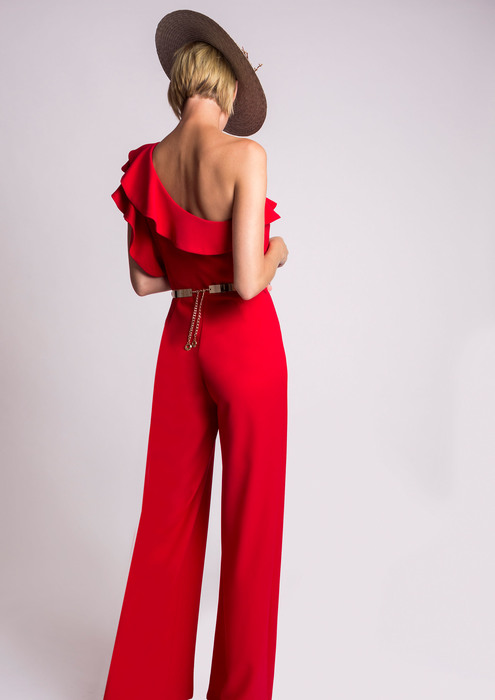 Mono largo asimétrico con pernera ancha y detalle de volante en azul ... 😈
