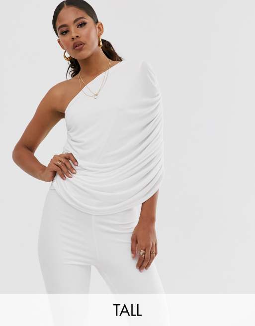 Mono largo asimétrico blanco con frunces de John Zack Tall ... 😈