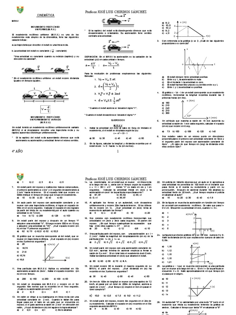Física y Química 3º ESO: Formulario Cinemática: MRU y MRUA 😈
